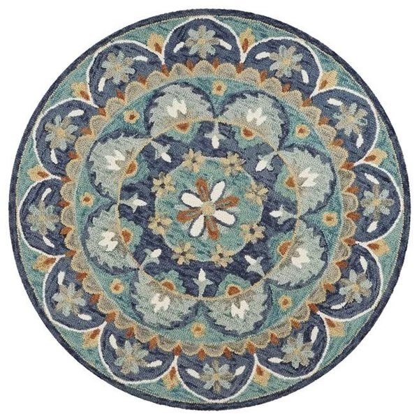 This gorgeous area rug brings style and sophistication to any space. The colors and patterns will tie together your pre-existing decor with ease! Refresh your space with this round area rug and fall in love with the inspired designs crafted with your home in mind. FeaturesHand hookedMade of wool with latex cotton canvas backingSpecificationsCollection: DazzleColor: Teal & BlueShape: RoundMaterial: Wool & Latex CottonCountry of Origin: IndiaWeight: 4.4 lbs