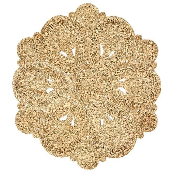 This jute rug is perfect to fit under a round dining room table or coffee table. Use it as an accent rug on a dark wood floor. The beautiful. natural color gives any room a casual feel with classic and understated style. Enjoy how soft it feels on your bare feet. Add this pretty jute rug to any area where you want to create an emphasis on natural elements in your space. The rug features a neutral color that blends nicely with nearly any decor or color scheme. so you can easily add softness and style underfoot without drawing attention from other focal points. Braided jute construction that exhibits naturally anti-static. insulating and moisture regulating properties.SpecificationsColor: NaturalShape: RoundSize: 4 ft.Weight: 20 lbs