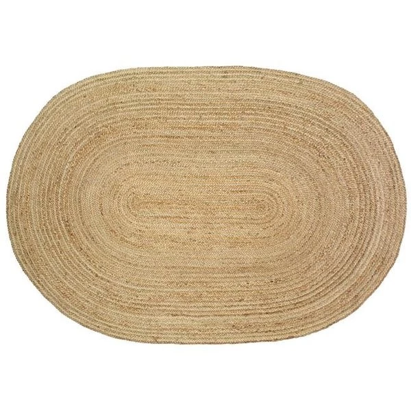 This jute rug is perfect to fit under a round dining room table or coffee table. Use it as an accent rug on a dark wood floor. The beautiful. natural color gives any room a casual feel with classic and understated style. Enjoy how soft it feels on your bare feet. Add this pretty jute rug to any area where you want to create an emphasis on natural elements in your space. The rug features a neutral color that blends nicely with nearly any decor or color scheme. so you can easily add softness and style underfoot without drawing attention from other focal points. Braided jute construction that exhibits naturally anti-static. insulating and moisture regulating properties.SpecificationsColor: Natural-GrayShape: OvalSize: 5 x 7 ft.Weight: 35 lbs
