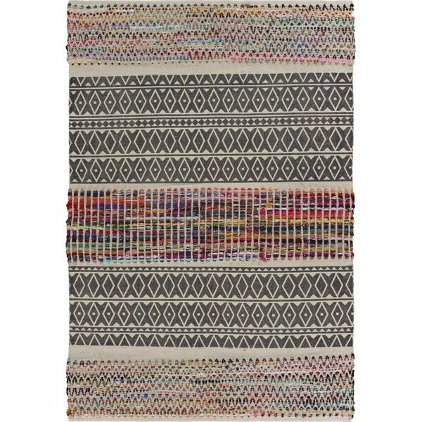 This particular piece highlights the traditional style while also featuring a wonderfully designed geometric blocking. This allows the rug to be easily added to your style! With a geometric take on the traditional Chindi style. LR Home brings you the Vogue Collection. This collection features wonderfully bright. globally inspired pieces that features a handmade. flat woven detailed construction and well toned materials. With two sizes. this collection can fit a variety of different spaces whether it be a dining area. living room. foyer. or even office space. SpecificationsColor: MultiMaterial: 60% Cotton and 40% Polyester with no backingShape: RectangleCountry of Origin: IndiaWeight: 7.5 lbs