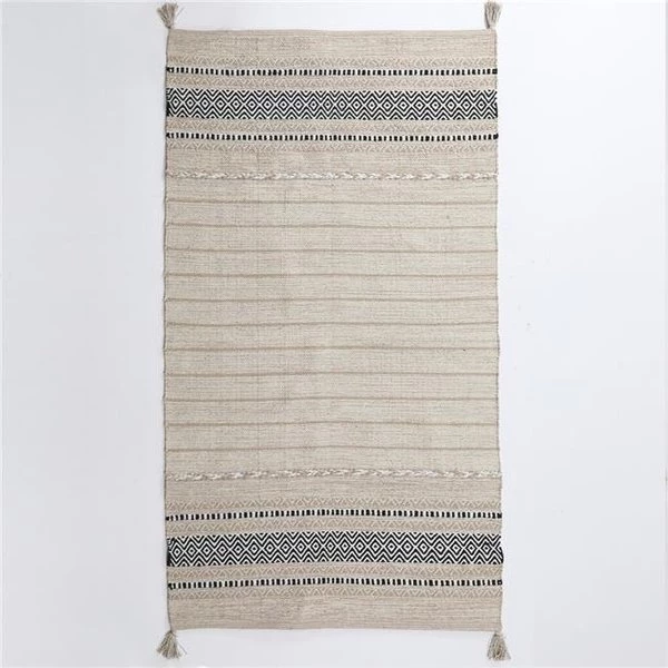 The rug pattern is made of cotton. Each indoor rug is hand woven by weavers in India. Superior yarn is used which adds quality. softness and durability. The indoor rug is a great way to bring color and style to any room of your home. Each weaver takes great care to craftily make the quality rug. On average it takes one day to make this stunning and beautiful rug. SpecificationsColor: KhakiSize: 4 x 6 ft.Material: Cotton ChenilleConstruction: HandloomWeight: 8.1 lbs