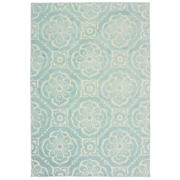 Oriental Weavers provide innovative designs and production technology enable us to transform the highest quality materials into a wide selection of products that can be enjoyed for years. but are affordable enough to replace as often as you redecorate. Barbados is a fresh. playful direction for the practical advantages of an indoor or outdoor construction. It features a fun array of colors including light strawberry. sage. washed denim and light sky blue. The cut and loop construction is highlighted by simple geometrics and globally inspired tile patterns that will work with a variety of decor both indoors and out. FeaturesBarbados outdoor area rugSpecificationsColor: BlueColor Blend: Blue & IvoryFibre Type: PolypropyleneBack Type: Woven PolypropyleneWeave: Machine WovenPattern: FloralShape: RectangleSize: 6 ft. 7 in. x 9 ft. 6 in.Weight: 16 lbs
