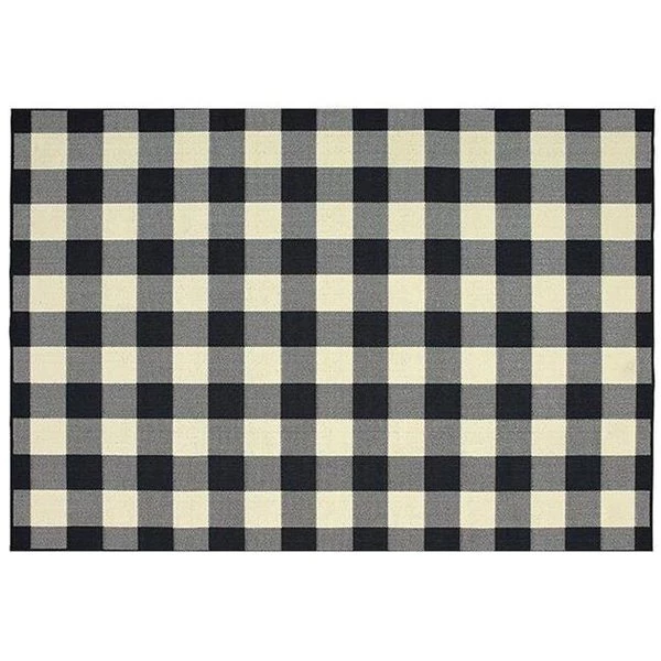 Marina is an elegant new introduction for indoor or outdoor use and features a 100% polypropylene looped yarn made in Egypt. It features a classic neutral palette using high contrast colors like black. ivory. deep navy. sand and cool gray. The collection includes casual but sophisticated patterns like updated geometrics and simplified traditionals that all feel fresh but timeless. FeaturesMarina Indoor Outdoor Outdoor Geometric Rectangle Area RugSpecificationsColor: Black Ivory Size: 5 ft. 3 in. x 7 ft. 6 in.Collection: MarinaStyle Type: OutdoorAlt Type: CasualBack Type: Woven PolypropyleneWeave: Machine WovenPattern: GeometricShape: RectangleCountry of Origin: EgyptPile Type: Loop PileFiber Type: PolypropyleneWeight: 11 lbs