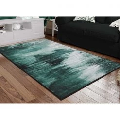 Deerlux Boho Living Room Area Rug with Nonslip Backing, Black Tribal Pattern, 5 x 7 Ft Medium