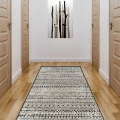 Deerlux Boho Living Room Area Rug with Nonslip Backing, Black Tribal Pattern, 3 x 5 Ft Extra Small