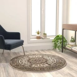 Flash Furniture Ivory 7×7 Round Traditional Persian Style Rug