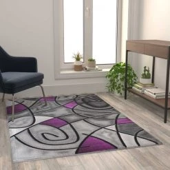 Flash Furniture Purple 5' x 7' Modern Swirl Pattern Area Rug