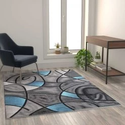 Flash Furniture Blue 5' x 7' Abstract Design Accent Area Rug