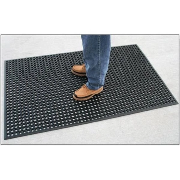 RACO has products and solutions to meet your unique needs. We pride ourselves on offering the most up-to-date line of products anywhere at prices that are highly competitive. Comfort Tract offers light weight design. high performance. and excellent anti-fatigue characteristics in industrial and commercial work stations. Comfort Tract at 1/2" thick features a molded bevel edge on four sides that helps keep the mat in place and provides easy employee and cart access. Molded cross bar surface assures safe footing. Multi-knob under side adds to comfort while enhancing drainage and cleanliness. Made of resilient grease-resistant rubber that stands up to machine tool cutting fluids. Butyl Alcohol. Sodium Hydroxide and similar liquids found in industrial and commercial situations. Available in two stock sizes. 3' x 5' and 3' x 10'. and two formulations grease resistant (black) and grease proof (gray). Mat is 1/2" thick. Colors: Black. Size: 3' x 5'.