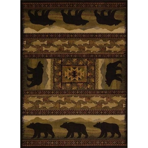 is an ideal source for value. source and design. We offer incredible quality without compromising on the design. We designs are created to suit the color theme and style that will complete your room.Add a hint of the outdoors right in your cabin or man cave. With the design of black bears and fish. this floor covering will accent your lodge decor. This machine made. jute-backing area rug will be an eye-catcher addition to any room.Care InstructionsProfessional & Dry Clean OnlySpecificationsCollection: AffinityColor: LodgeStyle: Southwestern/LodgeDesign: Black BearsMaterial: PolypropyleneEdge & Back: JuteConstruction: Machine-madeShape: RectangleUsage: IndoorPile Height: 10 mmCountry of Origin: TurkeyRug Size: 7'10" x 10'6"Rug Dimension: 94" x 126" x 0.4"Location:IndoorWeight:29 Ibs