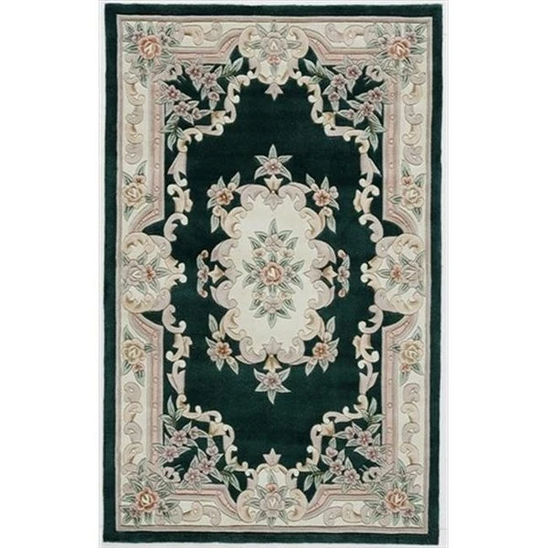 The New Aubusson Collection is hand tufted in China with the finest wool yarn. Craftsmen have created a 16th Century European Aubusson center medallion with an open field and intricate floral border pattern named after a small artistic city in Northern France. This rug has 12 colors of yarn in a thick wool pile. thus a masterpiece created for lasting beauty.FeaturesHand CraftedMaterial – 100% WoolNo FringeCollection – New AubussonColor – EmeraldShape – RectangularSize – 5 x 8 ft.Pile Height – 0.63 in.Origin – China