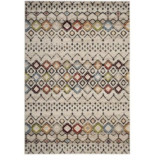 A refreshing take on innovative designs. Safavieh's Amsterdam Collection sheds a new light on modern styles. Power loomed with durable polypropylene yarn and styled in spectacular fashion. the Amsterdam rug is chic in look. yet versatile in function. A perfect piece to match any home decor whether in the country side or busy city home. Features100% Polypropylene PileTurkeyNo backing. rug pad recommended to help prevent shifting and slidingNo backing. rug pad recommended to help prevent shifting and slidingSpecificationsColor: Ivory & MultiSize: 6 ft.-7 in. x 9 ft.-2 in.Design: BohoRug Collection: AmsterdamCountry of Origin: TurkeyShape: Medium RectanglePile Height: 0.31 in.Material: Polypropylene PileWeave: Power LoomedWeight: 20 lbs