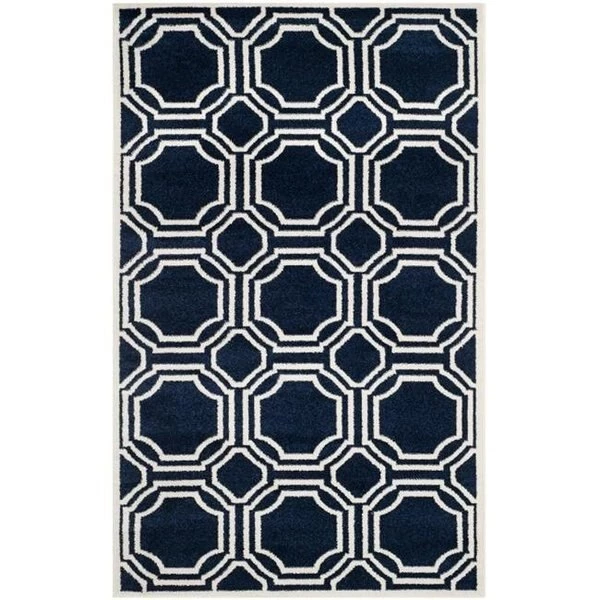 Safavieh's Amherst collection is inspired by timeless contemporary designs. Crafted using a power-loomed construction with a polypropylene pile. the Amherst is perfect for indoor and outdoor use.FeaturesStyle – Indoor/OutdoorMaterial – PolypropyleneColor – Navy / IvoryShape – Medium Rectangle (5 x 8 ft. – 6 x 9 ft.)Pile Height – 0.25 in.Weave – Power LoomedRug Size – 5 X 8 ft.Orgin – TurkeyIndoor Use OnlyCare InstructionVacuum regularly. Brushless attachment is recommended. Avoid direct and continuous exposure to sunlight. Do not pull loose ends;;; clip them with scissors to remove. Remove spills immediately;;; blot with clean cloth by pressing firmly around the spill to absorb as much as possible. For hard-to-remove stains professional rug cleaning is recommended.