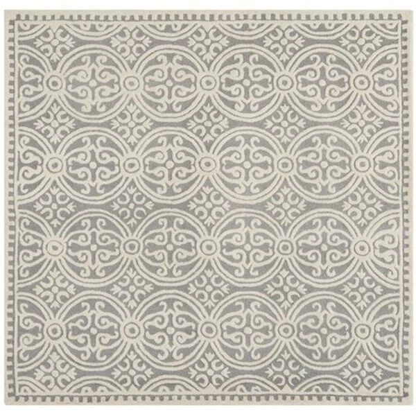 Update your living room. bedroom or entry hall with a beautifully textured Askot area rug featuring an over-scaled Moroccan motif that has graced beautified artisan tile floors for centuries. Hand-tufted of superior wool pile and crafted to endure. this simple but striking rug contrasts plush and pile textures for rich dimension.SpecificationsDesign Type: TransitionalShape: SquareRug Size: 10' x 10'Color: Silver / IvoryMaterial: WoolWeave: Hand TuftedMade In: IndiaWeight: 65 lbs