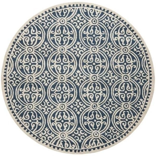 Update your living room. bedroom or entry hall with a beautifully textured Askot area rug featuring an over-scaled Moroccan motif that has graced beautified artisan tile floors for centuries. Hand-tufted of superior wool pile and crafted to endure. this simple but striking rug contrasts plush and pile textures for rich dimension.SpecificationsDesign Type: TransitionalShape: RoundRug Size: 9' x 9'Color: Navy Blue / IvoryMaterial: WoolWeave: Hand TuftedMade In: IndiaWeight: 52.65 lbs