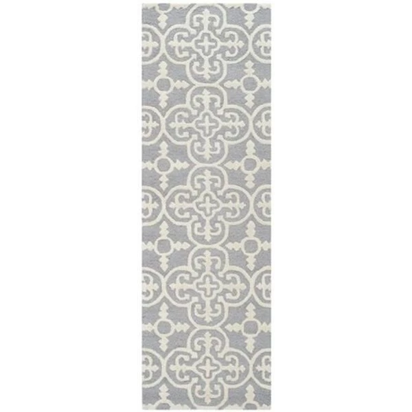 Update your living room. bedroom or entry hall with a beautifully textured Askot area rug featuring an over-scaled Moroccan motif that has graced beautified artisan tile floors for centuries. Hand-tufted of superior wool pile and crafted to endure. this simple but striking rug contrasts plush and pile textures for rich dimension.SpecificationsDesign Type: TransitionalMedium RectangleRug Size: 5' x 8'Color: Silver / IvoryMaterial: WoolWeave: Hand TuftedMade In: IndiaWeight: 32 lbs