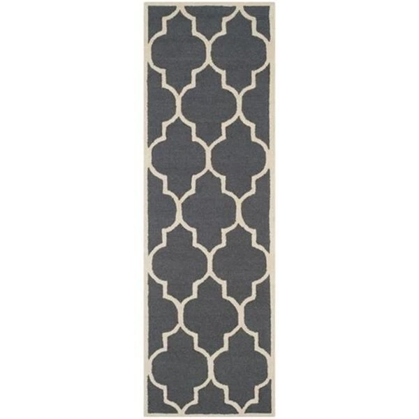 Update your living room. bedroom or entry hall with a beautifully textured Askot area rug featuring an over-scaled Moroccan motif that has graced beautified artisan tile floors for centuries. Hand-tufted of superior wool pile and crafted to endure. this simple but striking rug contrasts plush and pile textures for rich dimension.SpecificationsDesign Type: TransitionalShape: RunnerRug Size: 2' – 6" x 6'Color: Dark Grey / IvoryMaterial: WoolWeave: Hand TuftedMade In: IndiaWeight: 9.75 lbs