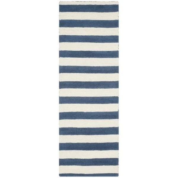 Update your living room. bedroom or entry hall with a beautifully textured Askot area rug featuring an over-scaled Moroccan motif that has graced beautified artisan tile floors for centuries. Hand-tufted of superior wool pile and crafted to endure. this simple but striking rug contrasts plush and pile textures for rich dimension.SpecificationsDesign Type: TransitionalShape: RunnerRug Size: 2' – 6" x 6'Color: Navy / IvoryMaterial: WoolWeave: Hand TuftedMade In: IndiaWeight: 9.75 lbs