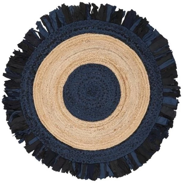 Inspired by global travel and the bold. colorful motifs adorning fashionable ski chalets. Safavieh translates rustic lodge style into the supremely chic and easy-care Adirondack collection. Crafted of enhanced polypropylene yarns. Adirondack rugs explore stylish over-dye and antiqued looks. making striking fashion statements in any room. This collection is power loomed in Turkey. FeaturesThese rugs are perfect in the bedroom. living room. dining room. or home officeCape Cod Coastal Round Hand Woven RugTransitionally designed. these rugs can be integrated into any contemporary. modern. traditionalSpecificationsConstruction: Hand WovenColor: Navy & NaturalSize: 5 x 5 ft.Fiber Content: Jute&CottonRug Collection: Cape CodShape: RoundCountry of Origin: IndiaWeight: 11 lbs