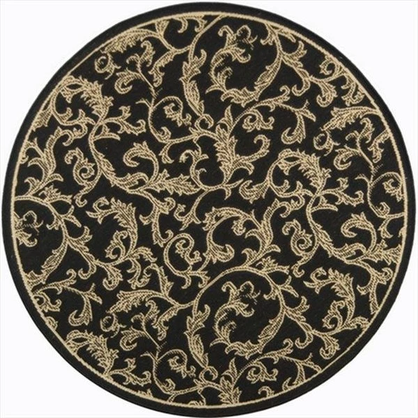 An all-over swirling arabesque design with simple frame lends the indoor outdoor Carlisle Tracery rug by Safavieh a sophisticated air in terracotta and natural. Perfect for high-traffic areas. the rug is power-loomed of polypropylene for easy-care.FeaturesCollection – CourtyardDesign – Indoor/OutdoorOrigin – TurkeyColor – Black and SandShape – RoundMaterial – PolypropyleneWeave – Machine MadePile height – 0.25 in.Size – 5 ft. 3 in. x 5 ft. 3 in. Care InstructionVacuum regularly. Brushless attachment is recommended. Avoid direct and continuous exposure to sunlight. Do not pull loose ends; clip them with scissors to remove. Remove spills immediately; blot with clean cloth by pressing firmly around the spill to absorb as much as possible. For hard-to-remove stains professional rug cleaning is recommended.