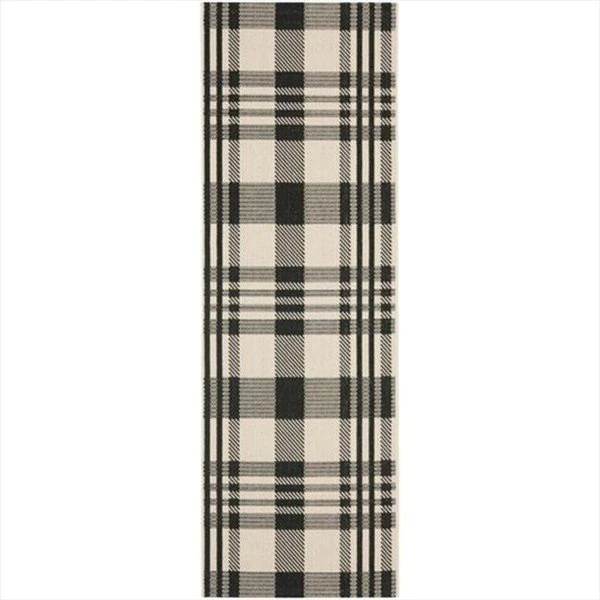 Safavieh takes classic beauty outside of the home with the launch of their Courtyard Collection. Made in Turkey with enhanced polypropylene for extra durability. these rugs are suitable for anywhere inside or outside of the house. To achieve more intricate and elaborate details in the designs. Safavieh used a specially-developed sisal weave.Features Design Type – Indoor/Outdoor Rug Collection – Courtyard Color – Black / Bone Rug Size – 2 ft. – 4 in. x 6 ft. – 7 in. Origin – Turkey Shape – Runner Material – Polypropylene Weave – Machine Made Pile Height – 0.25 in.Care InstructionVacuum regularly. Brushless attachment is recommended. Avoid direct and continuous exposure to sunlight. Do not pull loose ends; clip them with scissors to remove. Remove spills immediately; blot with clean cloth by pressing firmly around the spill to absorb as much as possible. For hard-to-remove stains professional rug cleaning is recommended.