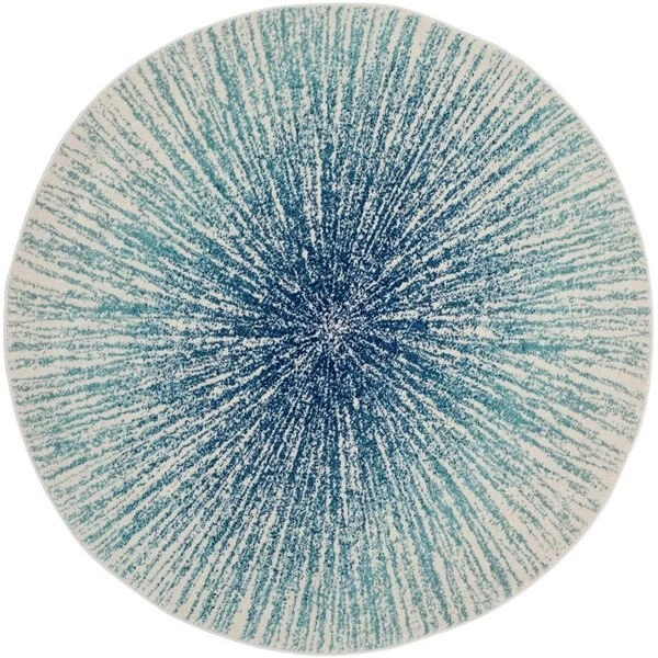 A spectacular fusion of fashion-forward pattern. color and texture. Evoke frieze rugs by Safavieh are soft and casual. Power-loomed of high-twist polypropylene yarns. these artful transitional rugs are designed for high style. performance and easy ca FeaturesNo backing. rug pad recommended to help prevent shifting and slidingUse rug protectors under the legs of heavy furniture to avoid flattening pilesSpecificationsColor: Royal & IvorySize: 3' x 3' RoundDesign Type: ContemporaryRug Collection: EvokeOrigin: TurkeyShape: RoundMaterial: 66% Polypropylene 27% Jute 5% Polyester 2% CottonWeave: Power LoomedPile Height: 0.35 in.Weight: 5 lbs