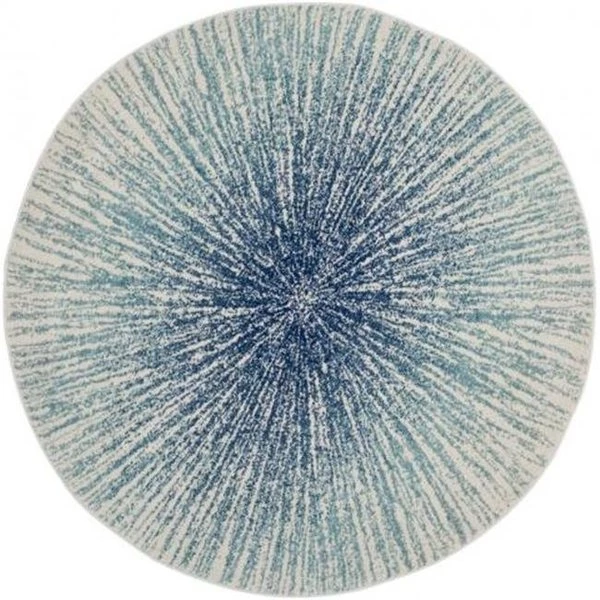 A spectacular fusion of fashion-forward pattern. color and texture. Evoke frieze rugs by Safavieh are soft and casual. Power-loomed of high-twist polypropylene yarns. these artful transitional rugs are designed for high style. performance and easy ca FeaturesNo backing. rug pad recommended to help prevent shifting and slidingUse rug protectors under the legs of heavy furniture to avoid flattening pilesSpecificationsColor: Royal & IvorySize: 5'-1" x 5'-1" RoundDesign Type: ContemporaryRug Collection: EvokeOrigin: TurkeyShape: RoundMaterial: 66% Polypropylene 27% Jute 5% Polyester 2% CottonWeave: Power LoomedPile Height: 0.35 in.Weight: 13 lbs