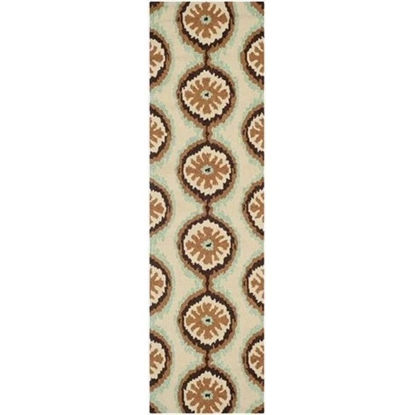 Chic and classic designs adorn this versatile collection of outdoor rugs. Hand hooked made of enhanced polypropylene for extra durability. these rugs are suitable anywhere inside or outside of the house.FeaturesStyle – Indoor/Outdoor.Rug Collection – Four Seasons.Material – Polypropylene.Weave – Hand Hooked.Color – Beige/Green.Rug Size – 2 ft. – 3 in. x 8 ft.Shape – Runner.Pile Height – 0.375 in.Origin – China.Care InstructionsVacuum regularly. Brushless attachment is recommended. Avoid direct and continuous exposure to sunlight. Do not pull loose ends; clip them with scissors to remove. Remove spills immediately; blot with clean cloth by pressing firmly around the spill to absorb as much as possible. For hard-to-remove stains professional rug cleaning is recommended.