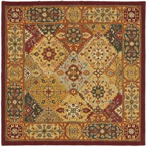 With rich. luscious detailing and a vibrant feel. Safavieh's Heritage collection brings life to any space. Hand-tufted of pure wool with strong cotton backing. these traditionally beautiful rugs can withstand even the most highly traveled areas of your home.FeaturesDesign Type – Traditional.Rug Collection – Heritage.Color – Multi.Size – 6 ft. x 6 ft. Square.Made in India.Shape – Square.Pile Height – 0.625 in.Material – Wool.Weave – Hand Tufted.Care InstructionsVacuum regularly. Brushless attachment is recommended. Avoid direct and continuous exposure to sunlight. Do not pull loose ends; clip them with scissors to remove. Remove spills immediately; blot with clean cloth by pressing firmly around the spill to absorb as much as possible. For hard-to-remove stains professional rug cleaning is recommended.