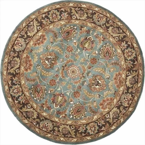 With rich. luscious detailing and a vibrant feel. Safavieh's Heritage collection brings life to any space. Hand-tufted of pure wool with strong cotton backing. these traditionally beautiful rugs can withstand even the most highly traveled areas of your home.FeaturesDesign Type – TraditionalRug Collection – HeritageColor – Blue / BrownOrigin – IndiaShape – RoundPile Height – 0.625 in.Material – WoolWeave – Hand TuftedRug Size – 6 x 6 ft.Care InstructionVacuum regularly. Brushless attachment is recommended. Avoid direct and continuous exposure to sunlight. Do not pull loose ends; clip them with scissors to remove. Remove spills immediately; blot with clean cloth by pressing firmly around the spill to absorb as much as possible. For hard-to-remove stains professional rug cleaning is recommended.