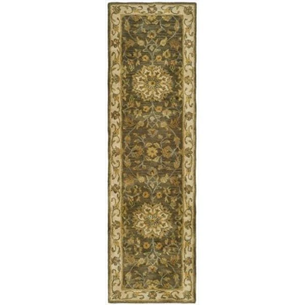 With rich. luscious detailing and a vibrant feel. Safavieh's Heritage collection brings life to any space. Hand-tufted of pure wool with strong cotton backing. these traditionally beautiful rugs can withstand even the most highly traveled areas of your home.Features:Design Type – TraditionalRug Collection – HeritageMaterial – WoolWeave – Hand TuftedShape – RunnerColor – Green / TaupeRug Size – 2 ft. 3 in. x 10 ft.Pile Height – 0.625 in.Origin – IndiaCare InstructionVacuum regularly. Brushless attachment is recommended. Avoid direct and continuous exposure to sunlight. Do not pull loose ends; clip them with scissors to remove. Remove spills immediately; blot with clean cloth by pressing firmly around the spill to absorb as much as possible. For hard-to-remove stains professional rug cleaning is recommended.