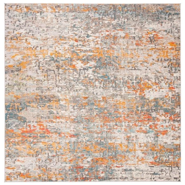 Brings watercolor tones to abstract paintings. enriching decor with artistic depth and bohemian flair.Warms contemporary furnishings in grey and orange with subtle blue accents.A stylish area rug perfect for modern or transitional living spaces.Power-loomed using synthetic yarns. Features8 x 8 ft. Madison 400 Contemporary Square RugAdd a stylish edge to your home without worrying about stainsFinest quality materialSpecificationsColor: Grey & OrangeShape: SquareCollection: Madison 400Pattern: ContemporaryStyle: ContemporaryFiber Content: Polypropylene FrieseConstruction: Power LoomedPile Height: 0.30"Backing: 81% Jute. 19% LatexSize: 8' x 8'Country of Origin: TurkeyWeight: 21 lbs