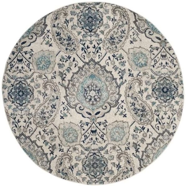 Chic styling and cool. soothing colors transform traditional rug artistry into the metro-swank look and luxurious feel of this fashion-now floor covering. Classic medallions and floral vines colored in enticing shades of grey are set against the soft. FeaturesMadison Power Loomed Round Area RugsSpecificationsColor: Cream & Light GreySize: 4 x 4 ft.Shape: RoundCollection: MadisonCountry of Origin: TurkeyMaterial: 65 % Polypropylene 21 % Jute 7 % Polyester 7 % CottonWeave: Power LoomedDesign Type: Boho. FeminineWeight: 17 lbs