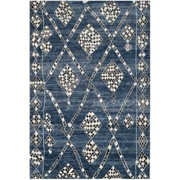 Naive nomadic symbols in natural wool colors lend a casual look to this plush hand-knotted rug from the Moroccan collection by Safavieh. Adapting beautifully from contemporary to traditional interior design styles.Features:Design Type – Contemporary .Rug Collection – Moroccan .Color – Blue / Black .Rug Size – 9 ft. x 12 ft. Origin – India .Shape – Large Rectangle (7'x9' – 10'x14') .Pile Height – 0.5 in.Material – Viscose / Cotton .Weave – Hand Knotted .Care InstructionsVacuum regularly. Brushless attachment is recommended. Avoid direct and continuous exposure to sunlight. Do not pull loose ends; clip them with scissors to remove. Remove spills immediately; blot with clean cloth by pressing firmly around the spill to absorb as much as possible. For hard-to-remove stains professional rug cleaning is recommended.