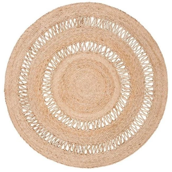 The natural fiber Collection of indoor area rugs for the home or office Features a wide selection of fashionable rugs made from soft Natural fibers. These rugs have been carefully crafted to create a texture-rich collection that is soft underfoot and remarkably decorative. Endless options of Sisal. seagrass. and jute rugs will be sure to provide a clean and organic look and feel to any decor. SpecificationsColor: NaturalShape: RoundStyle: ContemporaryCollection: Natural FiberMaterial: 100% JuteConstruction: Hand WovenPile Height: 0.39"Size: 3' x 3'Country of Origin: IndiaWeight: 9 lbs