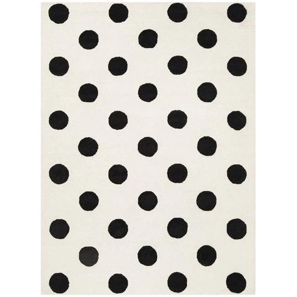 The area rugs for children in this Kids Collection features fascinating styles and colors for boys and girls of all ages. These hand-tufted 100% pure wool rugs are designed in stimulating colors and patterns that will brighten and energize the entire character of your child's bedroom. playroom or nursery. a wide selection of styles. colors and sizes. FeaturesCotton backing. rug pad recommended to help prevent shifting and slidinFor an instant decorating makeover. this area rug is one of the easiest and most fashionable ways to refresh a room with character and styleVacuum regularly and spot clean for hard-to-remove stains. professional rug cleaning is recommendedUse rug protectors under the legs of heavy furniture to avoid flattening pilesAvoid direct sunlight as it will cause the colors in your area rug to fade over time;; place your area rug away from direct sunlight whenever possibleSpecificationsColor: Ivory & BlackSize: 5' x 7'Shape: Medium RectangleDesign Type: YouthRug Collection: KidsOrigin: IndiaPile Height: 0.63 in.Material: 100% Wool PileWeave: Hand TuftedWeight: 29 lbs