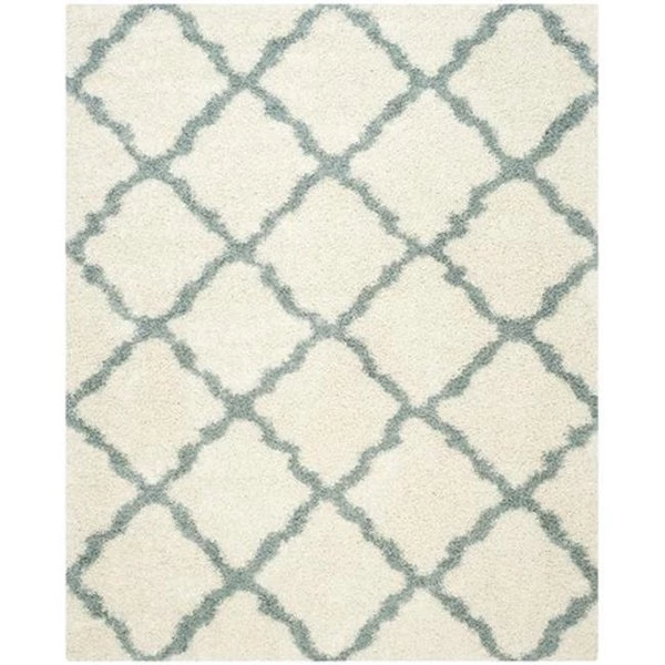 The fashionable Moroccan tile look is fresh in this Dallas Shag rug with ivory patterning on a dark grey shag texture. Power-loomed of easy care polypropylene. this organic-looking shag rug is crafted with a soft pile for plush comfort underfoot.SpecificationsDesign Type: Shag & FlokatiShape: RectangleRug Size: 8' – 6" x 12'Color: Ivory / Light BlueMaterial: PolypropyleneWeave: Power LoomedMade In: TurkeyWeight: 43.86 lbs
