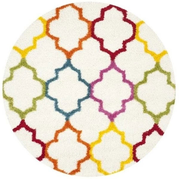 A fun and playful aesthetic is celebrated in Safavieh's colorful Kids Shag collection. Designed with a thick pile for added comfort and durability. these wonderfully soft carpets are woven of polypropylene yarn for outstanding quality and a playful plush texture which is soft underfoot for your little one.SpecificationsDesign Type: Shag & FlokatiShape: RoundRug Size: 6' – 7" x 6' – 7"Color: Ivory / MultiMaterial: PolypropyleneWeave: Power LoomedMade In: TurkeyWeight: 34.6699981689453 lbs