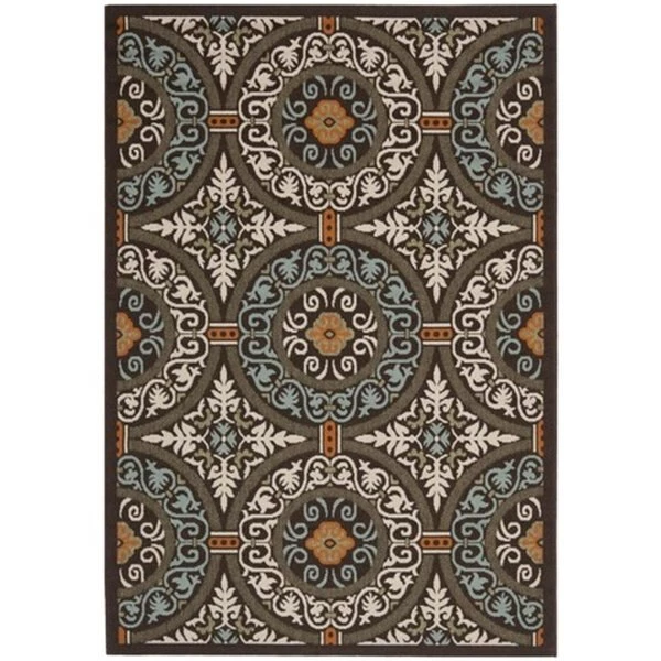 Coordinate indoor and outdoor spaces with pretty and practical area rugs from the Veranda collection in designs from mod florals to traditional classics. Power loomed of enhanced polypropylene for easy care on the patio or in the family room. the large loop texture and soft hand of Veranda rugs belie their resistance to wear and weather.SpecificationsDesign Type: Indoor/OutdoorShape: RoundRug Size: 6' – 7" x 6' – 7"Color: Chocolate / AquaMaterial: PolypropyleneWeave: Power LoomedMade In: TurkeyWeight: 20.8 lbs