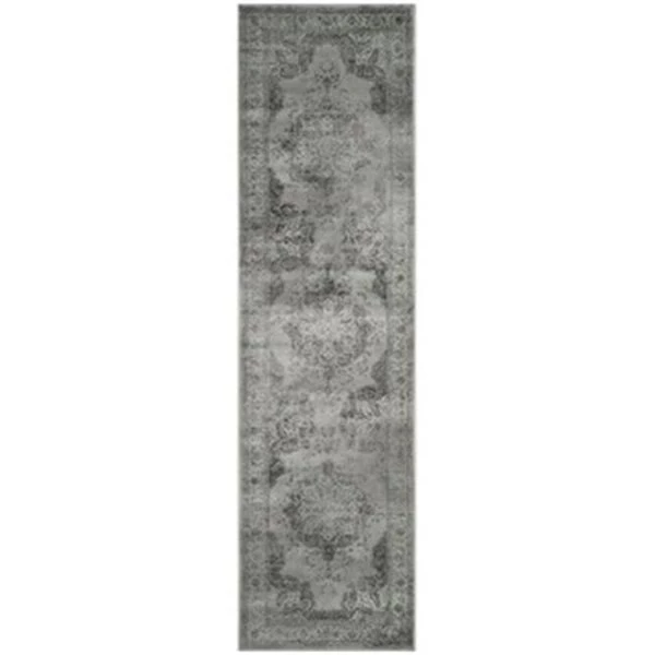 Inspired by timeless designs. Safavieh's Vintage collection is crafted with the softest viscose produced. This collection is power-loomed and made with viscose pile.Features:Design Type – Traditional .Rug Collection – Vintage .Color – Grey / Multi .Rug Size – 2 ft. -2 in. x 12 ft. Origin – Belgium .Shape – Runner .Pile Height – 0 in.Material – Viscose Pile .Weave – Power Loomed .Care InstructionsVacuum regularly. Brushless attachment is recommended. Avoid direct and continuous exposure to sunlight. Do not pull loose ends; clip them with scissors to remove. Remove spills immediately; blot with clean cloth by pressing firmly around the spill to absorb as much as possible. For hard-to-remove stains professional rug cleaning is recommended.