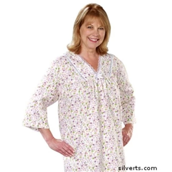 This Pretty Back Opening Hospital Nightgown is everything you dreamed. Comfortably roomy with a gathered yoke and pretty lace and ribbon trim. Full back overlap with snap closure at each shoulder. Cozy warm cotton flannelette.FeaturesAdaptive Clothing Size – 12-16Pretty Flannel Adaptive Hospital NightgownGender – WomensSize – MediumColor – EcruItem Weight – 1 lbs.