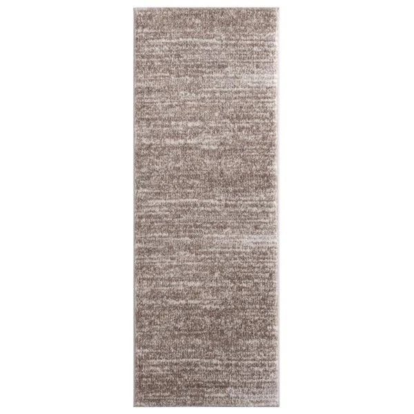 Attain your dream modern room decor with this spectacular ultra-contemporary rug. With a marvelous abstract design and tones of beige and brown. this alluring rug will be the focal point in your modish interior decor. The stunning rug will enliven your living space. Competently machine woven in Turkey using durable microfiber polyester yarn with jute backing for stain and fade resistance. SpecificationsCollection: TranquilityColor: BeigeColor Code: 20826Shape: RectangleRecommended Use: IndoorBacking Material: JuteMaterial: Microfiber. PolyesterStyle: ContemporaryConstruction: Machine MadePile Height: 1 1/4"Size: 2 ft. 7 in. x 7 ft. 2 in.Country of Origin: TurkeyWeight: 9 lbs