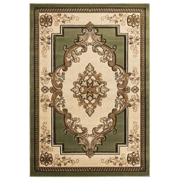 This royally grand area rug is a timeless piece to add to your interior design. This classic rug is filled with shades of olive green. gold and beige. Using an intricate border design and a large medallion in the middle. this floor covering will be the highlight of your room decor. This machine-made rug has a hand carved design and is stain and fade resistant for your lifestyle needs. SpecificationsCollection: BristolColor: GreenColor Code: 10545Shape: RectangleRecommended Use: IndoorBacking Material: JuteMaterial: Olefin. PolypropyleneStyle: Traditional/OrientalConstruction: Machine MadePile Height: 1/2"Size: 2 ft. 7 in. x 4 ft. 2 in.Country of Origin: TurkeyWeight: 8 lbs
