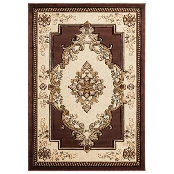 This royally grand area rug is a timeless piece to add to your interior design. This classic rug is filled with shades of chocolate brown. gold and beige. Using an intricate border design and a large medallion in the middle. this floor covering will be the highlight of your room decor. This machine-made rug has a hand carved design and is stain and fade resistant for your lifestyle needs. SpecificationsCollection: BristolColor: ChocolateColor Code: 10551Shape: RectangleRecommended Use: IndoorBacking Material: JuteMaterial: Olefin. PolypropyleneStyle: Traditional/OrientalConstruction: Machine MadePile Height: 1/2"Size: 2 ft. 7 in. x 7 ft. 4 in.Country of Origin: TurkeyWeight: 12 lbs