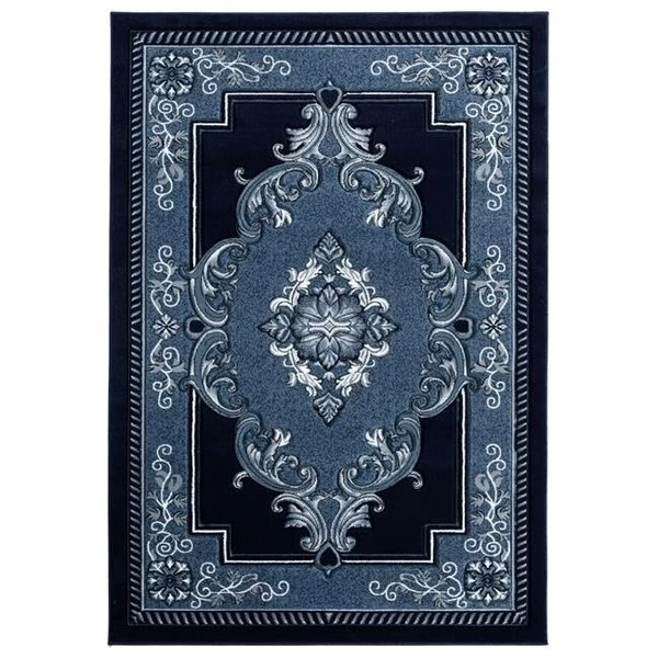 This royally grand area rug is a timeless piece to add to your interior design. This classic rug is filled with shades of navy blue and cobalt blue. Using an intricate border design and a large medallion in the middle. this floor covering will be the highlight of your room decor. This machine-made rug has a hand carved design and is stain and fade resistant for your lifestyle needs. SpecificationsCollection: BristolColor: NavyColor Code: 10564Shape: RectangleRecommended Use: IndoorBacking Material: JuteMaterial: Olefin. PolypropyleneStyle: Traditional/OrientalConstruction: Machine MadePile Height: 1/2"Size: 2 ft. 7 in. x 4 ft. 2 in.Country of Origin: TurkeyWeight: 8 lbs