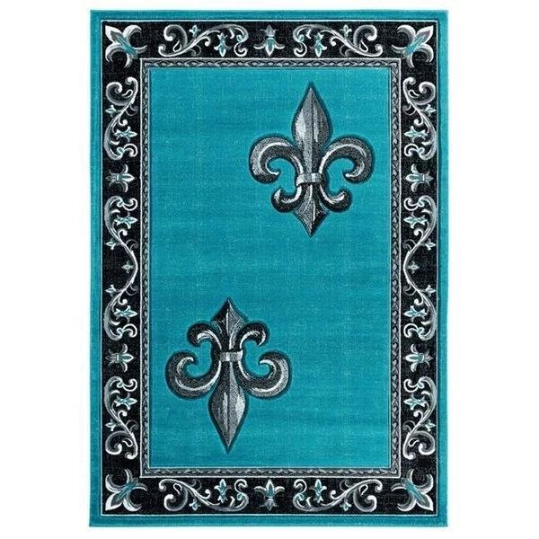 Timeless design and classic colors embody this exquisite rug. Using hues of turquoise blue. onyx black and cool grey. this simple yet stunning fleur de lis design will be the perfect luxurious touch you need in your room decor.. This machine-made rug has a hand carved design and is stain and fade resistant for your lifestyle needs. SpecificationsCollection: BristolColor: TurquoiseColor Code: 11269Shape: RectangleRecommended Use: IndoorBacking Material: JuteMaterial: Olefin. PolypropyleneStyle: Transitional/BorderConstruction: Machine MadePile Height: 1/2"Size: 2 ft. 7 in. x 4 ft. 2 in.Country of Origin: TurkeyWeight: 8 lbs