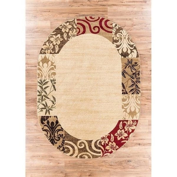 FeaturesPlush 0.4 in. pile height. 100 percent polypropylene power loomed in Turkey. Stain resistant and fade resistant. 100 percent jute backing is safe for wood floors. Shed free pile. Extremely durable and very easy to clean. made to last for years.Elegant floral nature damask pattern borders an area of ombre gradient shading for a formal. yet contemporary and transitional feel. Perfect for the living room. dining room. or bedroom.Size: 6 ft. 7 in. X 9 ft. 6 in.Shape – OvalColor: Multi Color.Luxury. handmade feel at machine made prices.