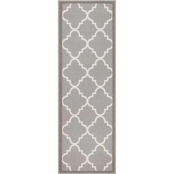 The King's Court collection is all about convenient decoration for a busy home. The looped nylon pile measures a low 0.3" so the rug traps less dirt and is more resistant to wear. A non-skid rubber backing eliminates the need for a rug pad and is safe for all types of floor. These rugs are machine washable. fade resistant. and serged on all sides for durability. They are easy to maintain and built to last. Variety of patterns from cutting edge and modern. to traditional. to kitchen cozy. you can put them anywhere. FeaturesMachine washableNon-skid nylon backing will prevent rug from slidingSerged on all sides for durabilityFade and wear resistantDense low looped nylon pileMachine made in TurkeyVacuum regularly with non-beater bar vacuumSpecificationsColor: GreySize: 2' x 7'Shape: RunnerWeight: 4 lbs