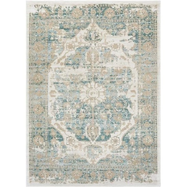 The Kensington Collection is a modern take on the heritage styles of generations past. Re-imagined classic patterns are woven in a striking yet subdued palette of warm coral and copper with minty blues and greens that bring to mind a cool breeze through fresh green grass. These colors are anchored by soft. neutral beige tones and given a distressed wear effect for a cozy. lived-in feel. The dense. 0.4" pile of fine. heat set polypropylene is soft. stain resistant. and won't shed or fade over time. The rug's 100% jute backing is safe for wood floors and all four sides of the rug are serged for improved durability. FeaturesKensington Maxwell Blue Vintage Modern Medallion Area RugVintage. distressed look and a combination of vibrant and subdued modern colorsThe rug's 100% jute backing is safe for wood floorsUse of a rug pad is recommended to extend the life of your rug and prevent shifting and slidingMachine Made in TurkeyStain resistant. and won't shed or fade over timeCleaning Instruction:Soiled areas should be cleaned immediately with a mild detergent. With a dry towel. blot stain;; mix dish soap with water and gently remove the remainder of the stain. Do not machine wash. Do not bleachVacuum regularly with non-beater bar vacuumSpecificationsColor: BlueCollection: KensingtonStyle: ModernSize: 5 ft. 3 in. x 7 ft. 3 in.Weight: 16 lbs