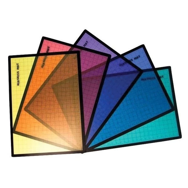 Jack Richeson Neatness Mat measuring 19-5/8 in x 14-1/8 in is made of strong polypropylene that is ideal for keeping your space neat and clean. It can be marked with a grid of 3/4 in for easy measurements and alignment. Mat is flexible. waterproof and resistant to glues/stains and can be used on an overhead projector. Mat comes in yellow. red. purple. blue and green colors. It can be washed and can be used repeatedly. FeaturesSet of 5Neatness Mat SetSpecificationsGrade Level: Middle-High SchoolColor: Assorted ColorsSize: 19.62 x 14.12 in. Dimension: 0.2" H x 14.125" W x 19.625" L